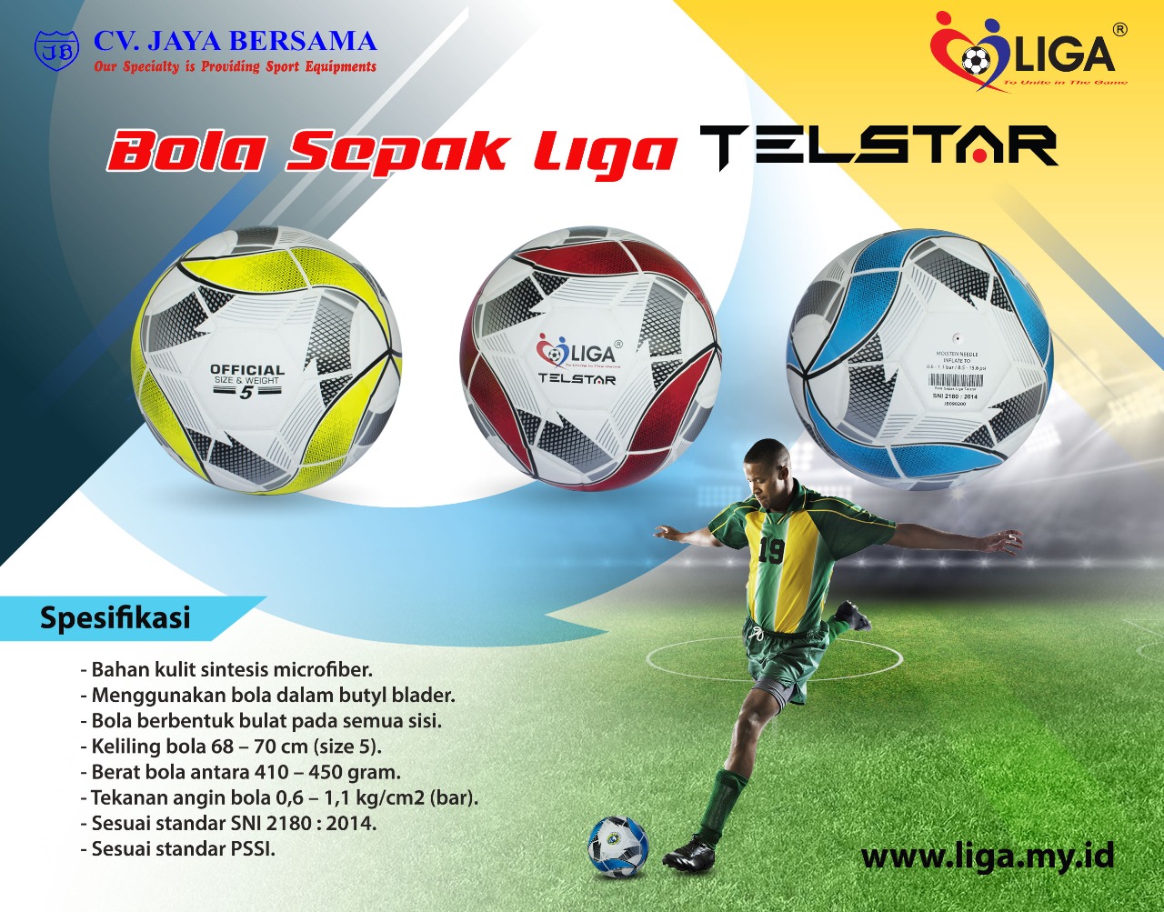 Spesifikasi Bola Sepak Liga Telstar merek Liga sebagai berikut :