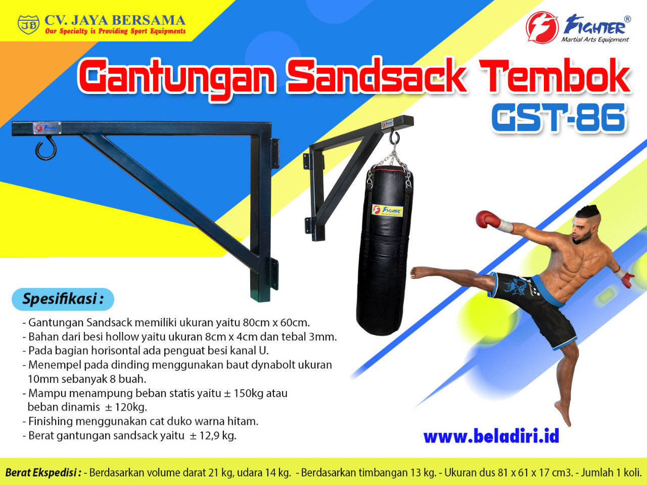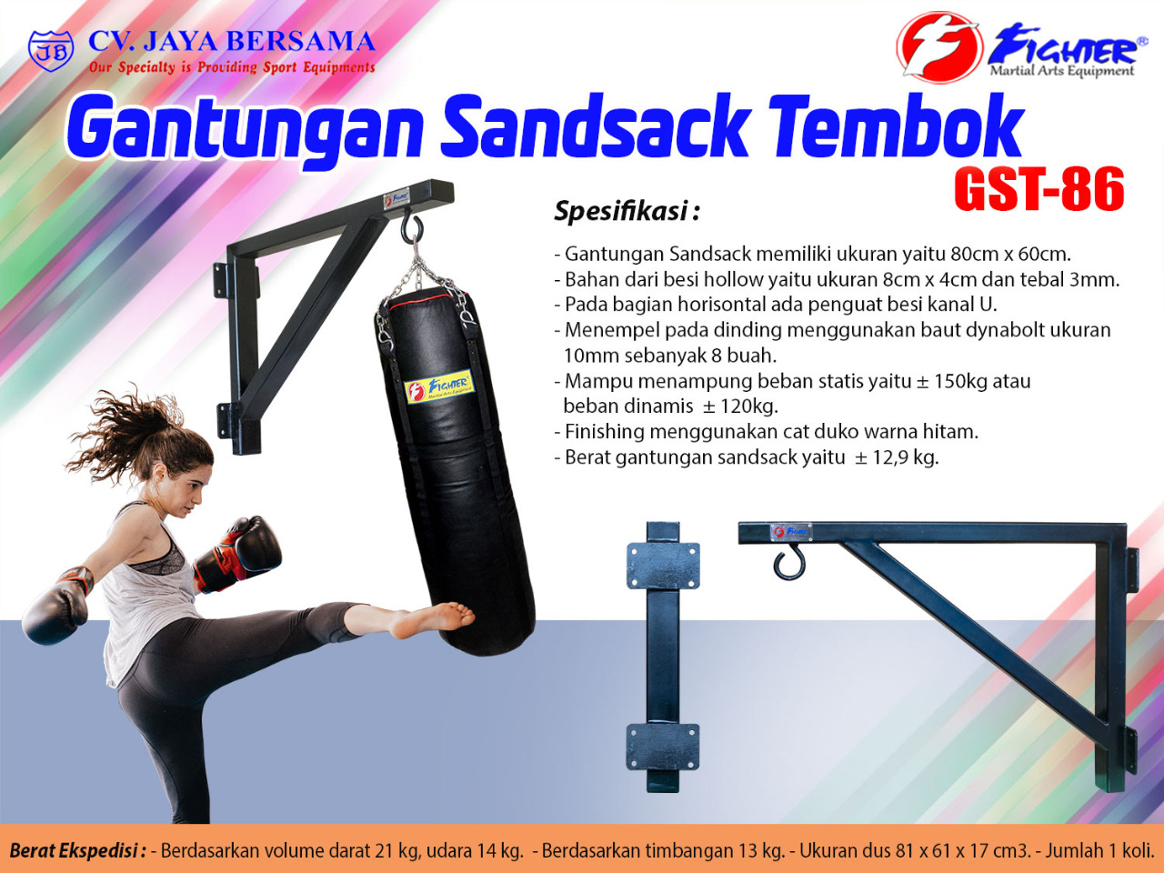 Spesifikasi Gantungan Sandsack Tembok GST-86 merek Fighter sebagai berikut :
