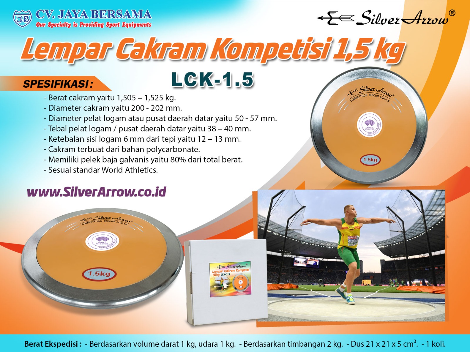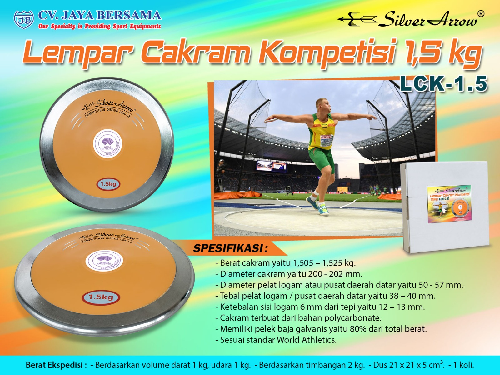 Spesifikasi Lempar Cakram Kompetisi 1.5kg LCK-1.5 merek Silver Arrow sebagai berikut :