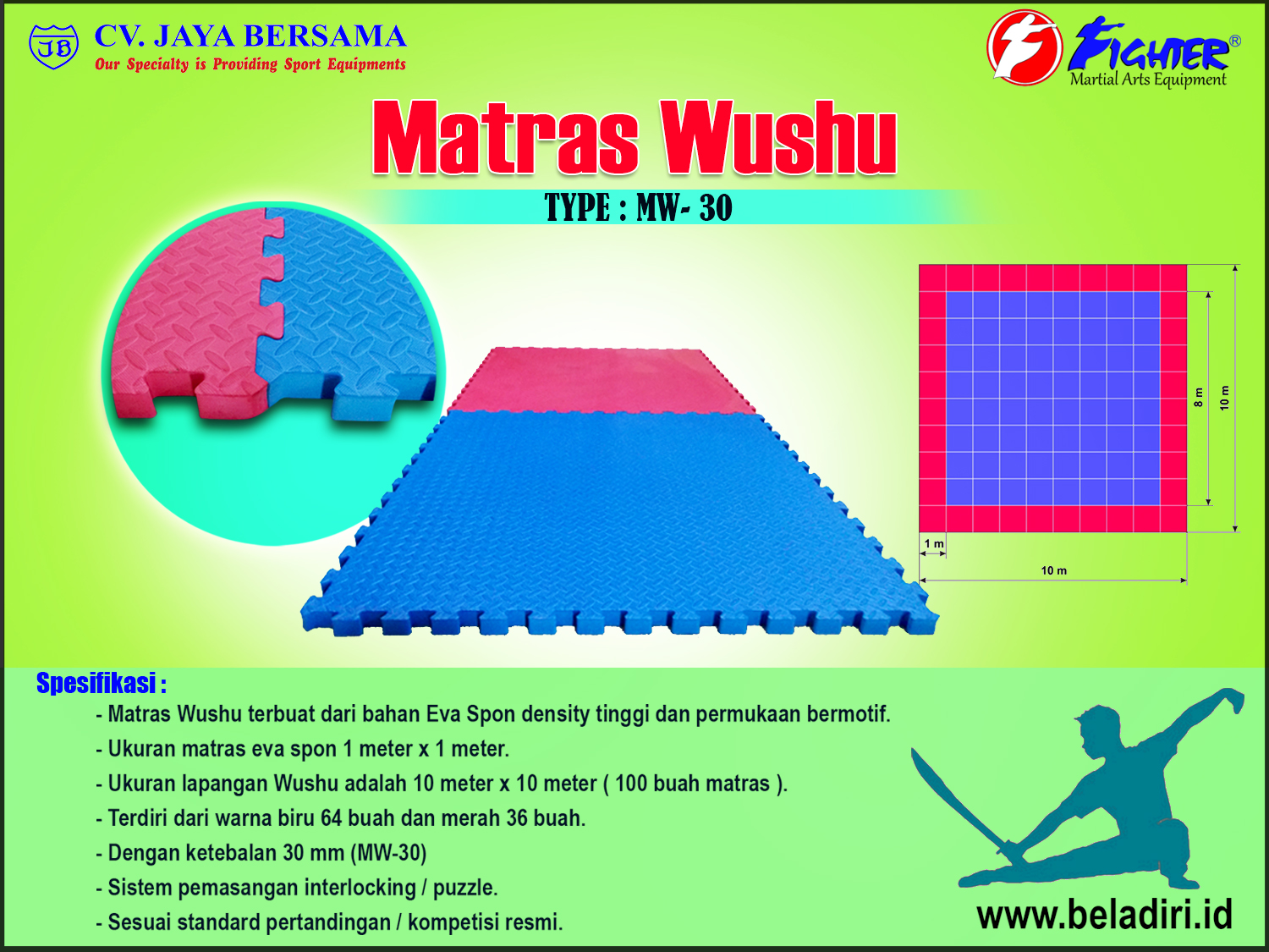Spesifikasi Matras Wushu MW-30 merek Fighter sebagai berikut :