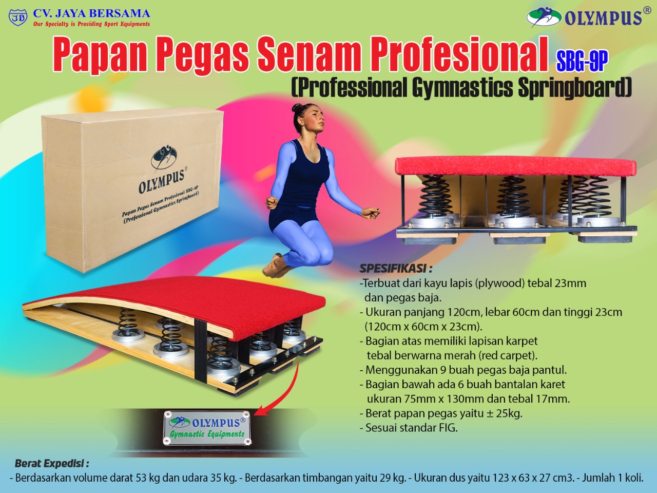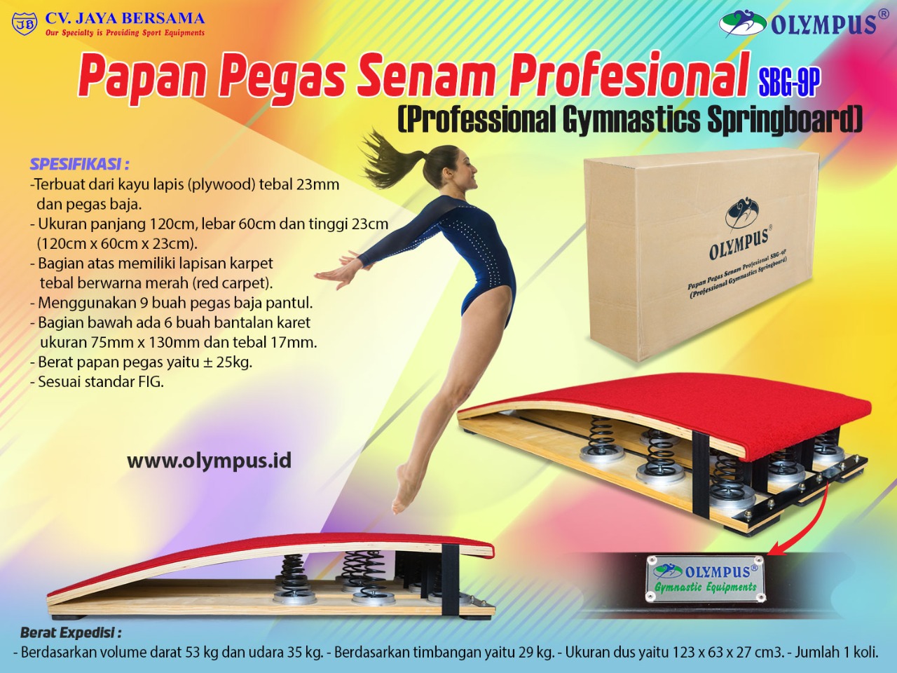 Spesifikasi Papan Pegas Senam Profesional SBG-9P (Professional Gymnastics Springboard) merek Olympus sebagai berikut :
