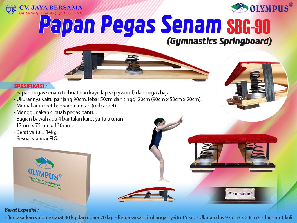 Spesifikasi Papan Pegas Senam SBG-90 (Springboard Gymnastics) merek Olympus sebagai berikut :