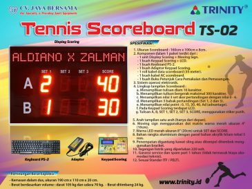Spesifikasi Scoreboard Bola Tenis TS-02 merek Trinity sebagai berikut :