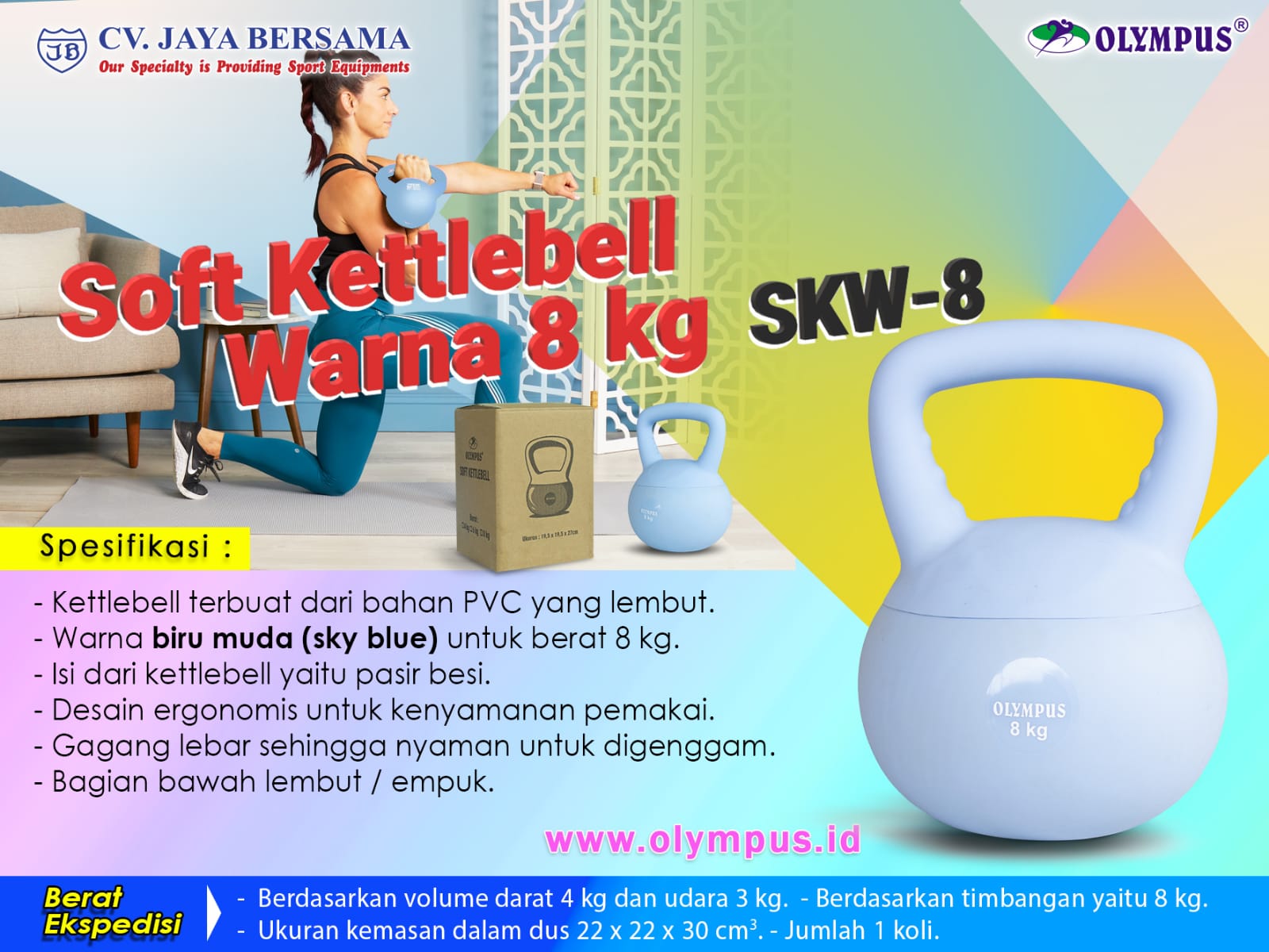 Spesifikasi Soft Kettlebell Warna 8 kg SKW-8 merek Olympus sebagai berikut :