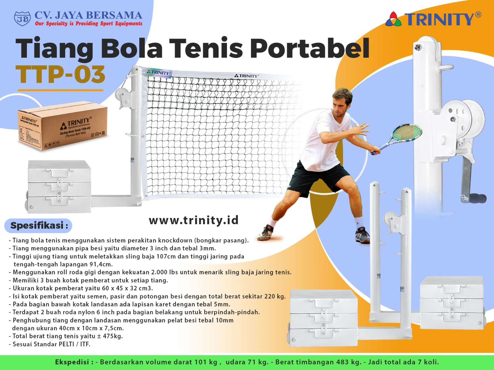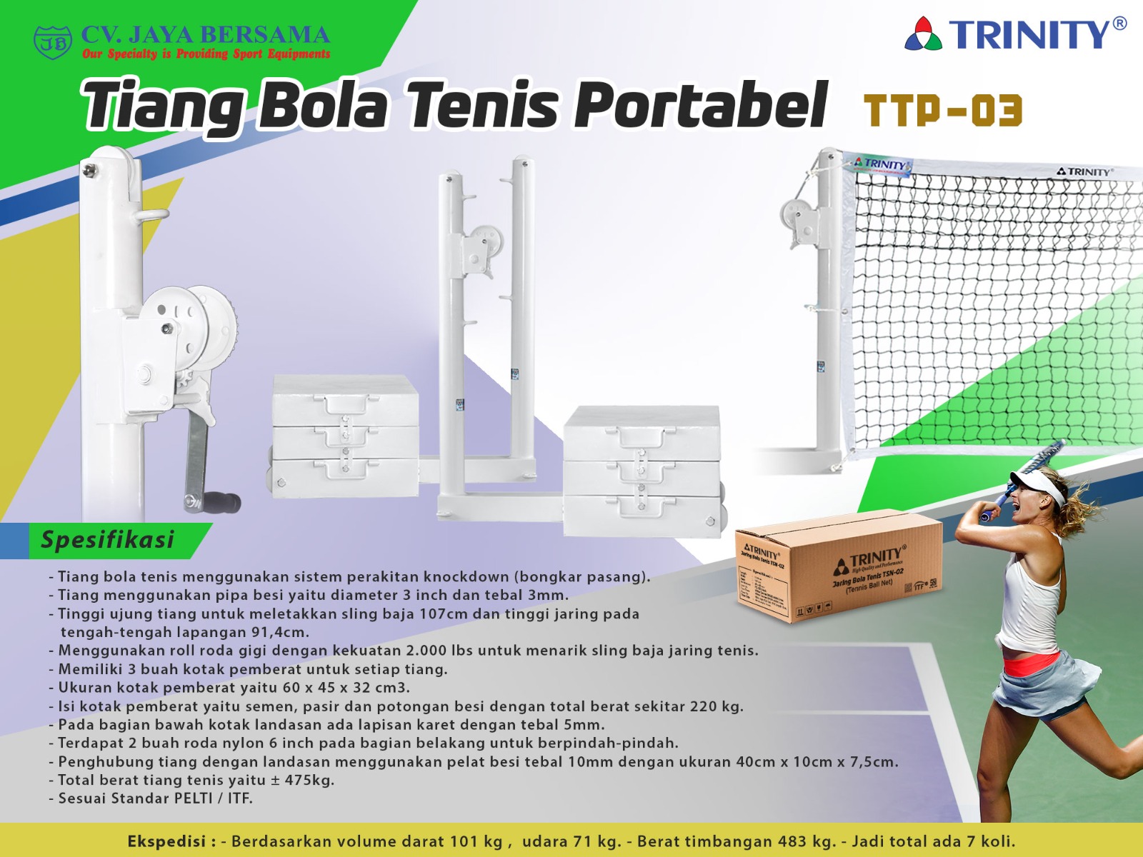 – Total berat tiang tenis yaitu ± 475kg.